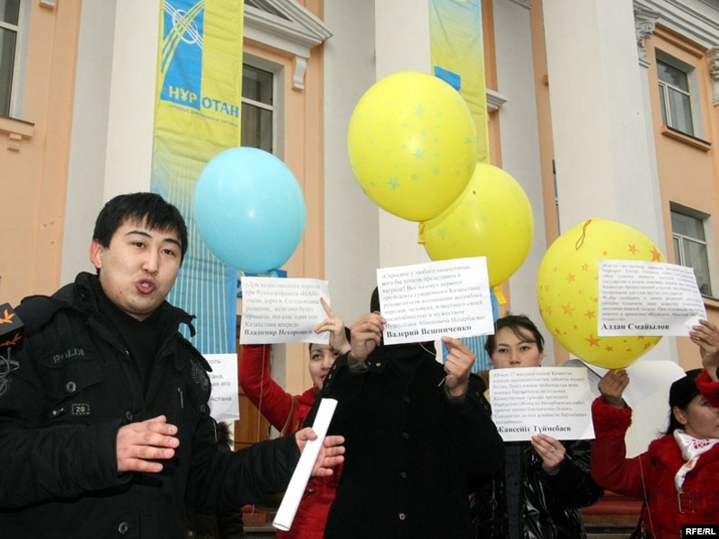 Сейсенбі күні Алматыдағы Абылайхан даңғылы мен Әйтеке би көшелерінің қиылысында орналасқан «Нұр Отан» ХДП филиалы кеңсесінің алдында бір топ студент жастар «Біз жарамсақтыққа қарсымыз» атты наразылық шарасын өткізді.