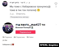 TikTok-тағы видеолардың біріне пікір жазған, Владивостокта тұратын қыз жігітінің "жаттығуға бара жатпағанына" сенімді. Азаттық радиосының қойған сұрағына ол жас жігітті "Украинаға" апара жатқанын айтып, мұндай ақпаратты қайдан алғанын нақтыламады. Одан кейін оның "десантты-щабуылдаушы батальонда" жұмыс істейтінін нақтылап, кейінгі хабарламаларында 155-теңіз жаяу әскер бригадасына кіретінін растады.