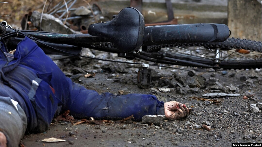 Украина әскерилері Киев облысындағы елдімекендерді азат еткен соң Ресей әскерилерінің зорлық-зомбылық әрекеті жайлы көп айтыла бастады. Украиналық әскерилердің Богдановқа ауылында түсірген видеода толық өртенген үйдің жанында ер адамның мәйіті жатыр.